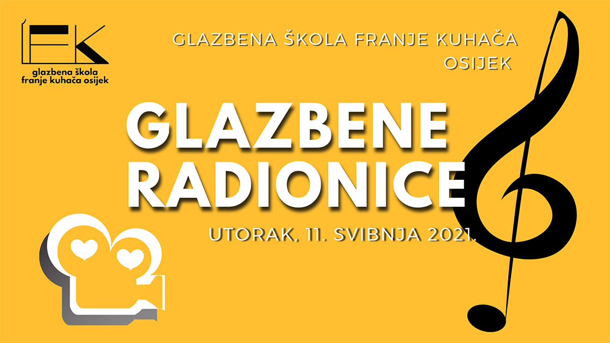 Glazbene radionice za kraj nastavne godine održavaju se od 10. do 14. svibnja 2021. godine. Zahvaljujući tehnologiji možete pratiti sve radionice putem školskog YouTube kanala. Svojim snimkama predstavit će se učenici škole koji su to pravo izborili na audicijama, kao i oni koji su se iskazali svojim rezultatima na natjecanjima u ovoj školskoj godini. Putem snimaka predstavit će se i ponajbolji učenici prijateljskih glazbenih škola Slavonije i Baranje.